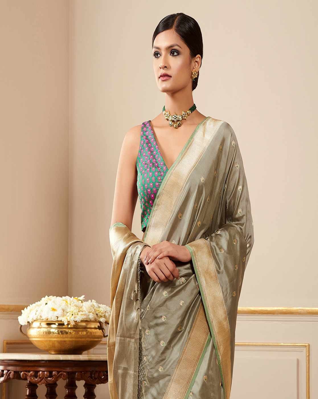The last image gives a detailed look of the blouse piece that comes with this saree (The blouse in the images is only for styling purpose)